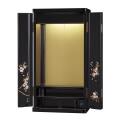 - 静岡ブランドの高級上置きコンパクト仏壇。ピアノブラック鏡面塗装に桜蒔絵をあしらった職人の技が光る工芸品です