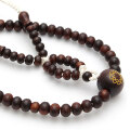 片方の親玉に学会マーク(八葉紋)の入った、天然木の風合いを感じられる木製念珠です。