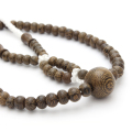 縞模様のようなはっきりとした木目が特徴的な、天然木の風合いを感じられる木製念珠です。