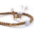 ・「磨く」:数珠玉の「穴」と「穴口」を磨き、糸切れを防ぎます。一般的な超音波を使用した穴空け方法では、穴の中はザラザラでヤスリの中に紐を通すようなものです。穴の内部も表面と同じくらい滑らかになるよう、研磨にこだわりました。・「通す」:数珠玉に糸を通すためには、縦にも横にもねじれに強くなくてはなりません。ウーリーナイロンを加工し、オンリーワンの糸を作りました。万が一の糸切れの際も、玉の飛び散り防止のため糸を2本撚り合わせております。