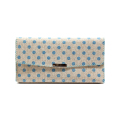 ベージュの生地に水色のドット柄が可愛い数珠袋。