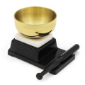 りんは、縁(尖った角の部分)を上から叩くのではなく、縁より少し下辺りを横から叩くと美しい音が響きます。